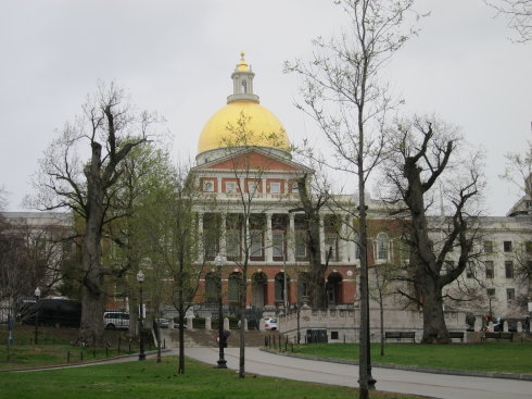 麻省州议会:耀眼的金顶。此乃波士顿地标,在地图上,“波士顿”就落在这个点上。