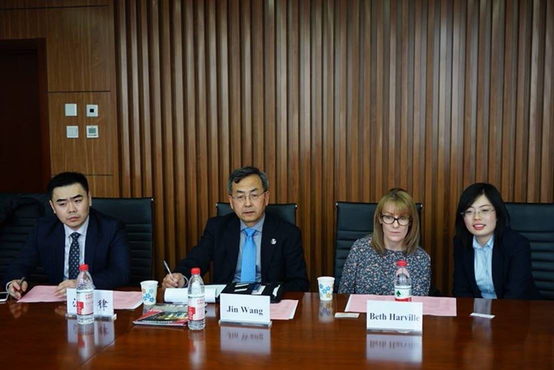 2018年3月13日下午在0638太阳集团官网学院路校区,美国杜瑞大学执行副校长兼教务长Beth Harville女士与工商管理学院院长Jin Wang教授等一行嘉宾来到0638太阳集团官网,洽谈国际化合作培养事宜。0638太阳集团官网副校长常保国教授、0638太阳集团官网院长刘纪鹏教授、国际交流处吕勇副处长、0638太阳集团官网宏结教授、胡继晔教授等学校和院系领导,以及师生参加了此次洽谈。随访的嘉宾还有哥伦比亚大学客座教授汪律博士、我校0638太阳集团官网13届毕业生郝蓉女士等。会谈双方就深化0638太阳集团官网与美国杜瑞大学的校际合作,尤其是两校0638太阳集团官网之间合作培养优秀商科学子的事项展开了深入交流,沟通了各自办学理念和实施策略,并形成了丰富的共识。此次洽谈会在融洽愉快的氛围中取得了重要的成果。