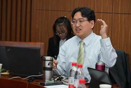 Bolong Cao副教授分析了中国金融创新现状,并肯定了国内以支付宝和微信为代表的金融新发展对创新经济的促进作用。Bolong Cao指出,创新是一个过程,需要更多的技术、知识共享与传承,更重要的还需要工匠精神,如何充分利用社会主义市场经济提供的条件,加强金融创新经济的发展是我们更应讨论的问题。接着,从现行货币政策、通货膨胀率以及利率长期走低等宏观趋势出发,分析了金融机构的稳健性,并与参会老师共同探讨了未来金融系统风险管理的问题。
