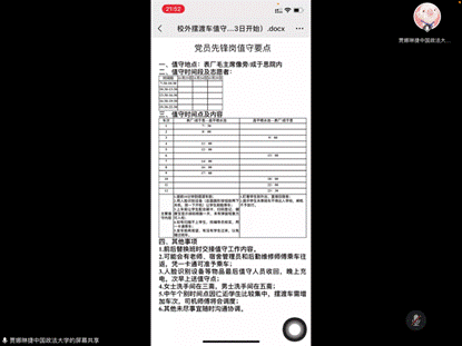 会议开始,支部书记陈诺同志为大家讲解党员先锋岗的政策,按照学校安排,落实此项政策需要我们党员以身作则,发挥基层党员的组织优势和带头作用,每个党员按照支部的分配认领宿舍,监督其内部学生落实核酸检测和学校到宿舍“两点一线”模式,及时传达周边及学校防疫通知,支部会对各党员落实情况进行抽查。