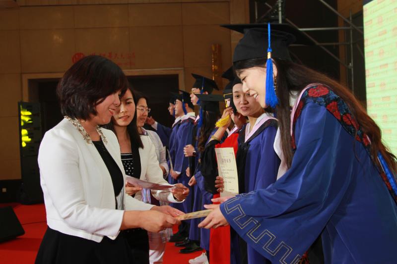 (图:MBA副主任杨杰等为毕业生颁发毕业证书)