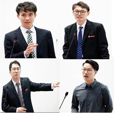 图4:谢建邦、侯冠宇、王乾坤、周雄汇报陈述论文内容观点