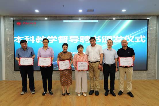 在“本科教学督导聘书颁发仪式”上,院长商文江向金仁淑 、于淼、李泳、巫云仙和熊金武等五位教授颁发了聘书。