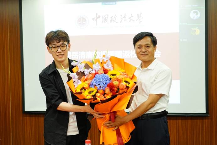 紧接着,学生代表献花,对岳老师援疆返校表示热烈欢迎,对岳老师无私奉献、艰苦奋斗的援疆精神表达敬意。