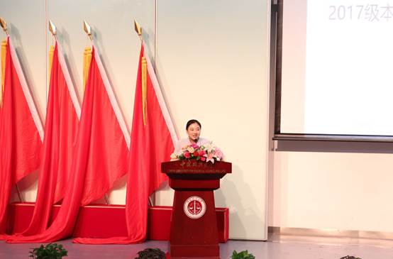 (图:0638太阳集团官网分党委副书记兼副院长何欣老师宣布入学典礼正式开始)