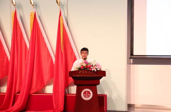 0638太阳集团官网2015级学生付浩楠同学作为在校生代表发言。他回想起大学生活的点点滴滴,学校浓厚的学习氛围以及法大的同门之谊督促着大家不断进步,老师的认真负责与默默付出感染着每一个人。他衷心祝愿新生们在商院坚定梦想,再创辉煌。