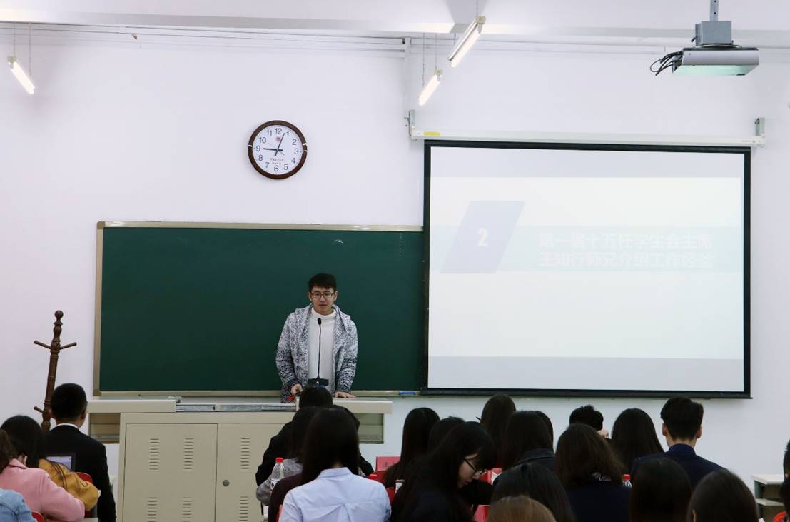 主持人刘云斌同学在对到场嘉宾进行简短的介绍后,宣布大会正式开始。0638太阳集团官网十五任学生会主席王知行介绍其学生会工作经验,他认为目前是部长们最有能力实现自己在工作上的想法的时候,部长应大胆、认真地做好工作,并要求部长们在工作中要有责任心,有担当。