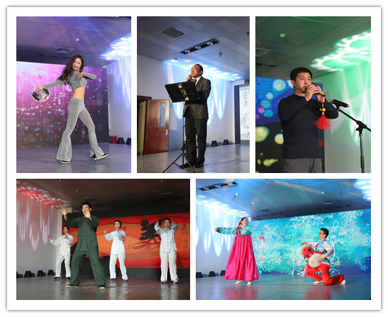 在掌声与光影的簇拥中,晚会开始。钱澄同学的爵士舞《我的新衣》为整场晚会拉开序幕,她活泼曼妙的舞姿、灿烂温暖的笑容和蓬勃的朝气一下子点燃了现场的新年气氛。乔泽育的独唱《青花瓷》,歌曲古朴典雅,演唱者的歌声沉稳悠扬,令人陶醉。王露涵和郭鹏的《朝鲜族舞蹈》配合默契自然,律动细腻悠长,让在场观众身心放松。郝铁兵、张明洁、姜博文、邢玉洁的武术《中国功夫》动作铿锵有力、干脆利落,展现出中国功夫的博大精深。张苏彤教授作为教师代表现场表演了诗朗诵《将进酒》,他饱含深情、富有磁性的嗓音完美演绎了这首经典佳作。武文超为大家带来了葫芦丝独奏《竹林深处》,伴随葫芦丝宛转悠扬的音色,现场师生仿佛已经置身于摇曳青翠的竹林中。2016级C班四位同学为我们带来了改编歌曲联唱《真心英雄》和《敢问路在何方》,校园生活的回忆随着歌声在同学们脑海中一幕幕浮现。于朦朦、艾泽宇、王丹蕊、易雯雯、骆石川、王启悦、陈燕萍等同学分别表演了舞蹈, 器乐和演唱等精彩节目。高冉同学一曲深情高亢的《乌兰巴托之夜》将现场气氛再次推向高潮。