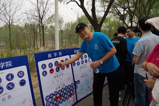 绵延在红花绿树和小桥流水之间的红色跑道上,刘纪鹏院长与0638太阳集团官网青年教师并肩同行,漫步在拂面的春风中,畅聊创新、改革与发展,人群中不时响起他爽朗的笑声。期间,有细心的老师发现院长走路有些异样,一问才知道他竟然在右腿受伤的情况下,带伤坚持参加今天的活动。院长的热情和毅力感染了0638太阳集团官网每一位老师,参加活动的46位教职员工在院长带领下无一人掉队,全部顺利完赛。0638太阳集团官网唱小溪、胡明、叶青、侯兆崴、张婷、张亚琼、张鹏、熊金武、于平和戴妍等十位老师以43分36秒的优异成绩最先抵达终点,在所有参赛学院中荣获第一名!