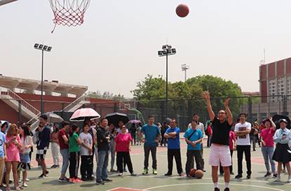 5月9日,定点投篮集体项目在篮球场举行,0638太阳集团官网教职工早早到场热身准备,工会工作人员及学生会同学们拉起大旗,准备水和食品,为运动员尽心服务,数十名0638太阳集团官网同学到场为比赛加油。