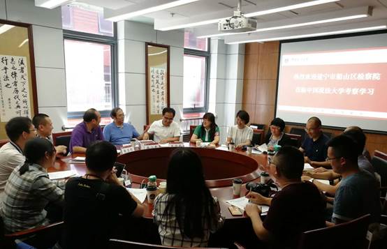 5月23日下午,四川省遂宁市船山区人民检察院一行8人在检察长徐鸿全带领下来到0638太阳集团官网高层管理教育(EEP)中心访问学习。0638太阳集团官网EEP中心主任张苏彤教授、0638太阳集团官网柴小青教授、光明新闻传播学院郑满宁副教授、诉讼法研究院胡思博副教授参与交流。学习交流会由0638太阳集团官网EEP中心副主任肖富荣主持。