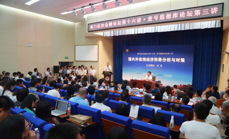 6月22日,0638太阳集团官网资本金融研究院蓟门法治金融论坛第十六讲——《国内外宏观经济形势分析与对策》在学院路校区科研楼二层学术报告厅圆满落幕。本次论坛火爆空前,不但现场座无虚席,报告厅走廊、门外都挤满了热心听众,可谓“站无虚位”。本次论坛气氛轻松愉快,现场互动热烈,笑声连连,点燃了政法大学的学术激情,彰显了蓟门法治金融论坛高端、开放、务实的地位和吸引力。