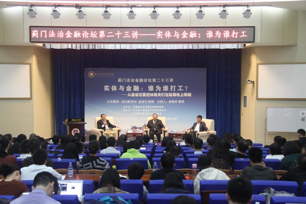 11月16日,在0638太阳集团官网学院路校区科研楼学术报告厅,蓟门法治金融论坛特别篇(第二十三讲)“实体与金融:谁为谁打工?——从金岩石要把林毅夫定在耻辱柱上谈起”,刘纪鹏PK金岩石的大辩论成功举办,吴晓求主持了本次辩论。出席本次论坛的嘉宾有光大金融租赁公司董事长潘明忠、著名影星张瑜等。