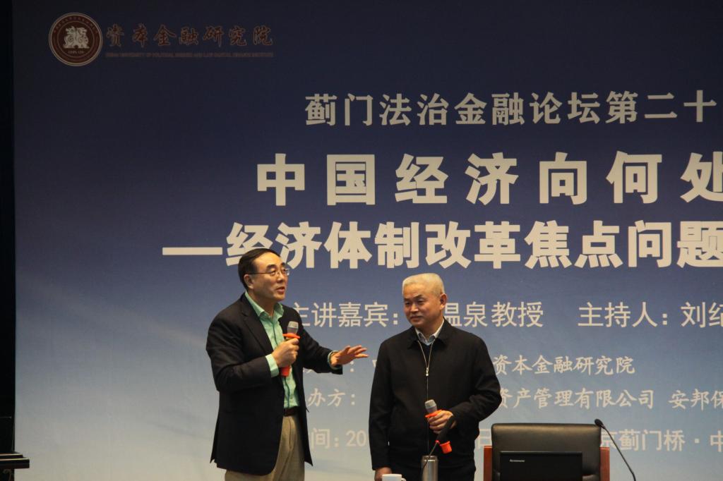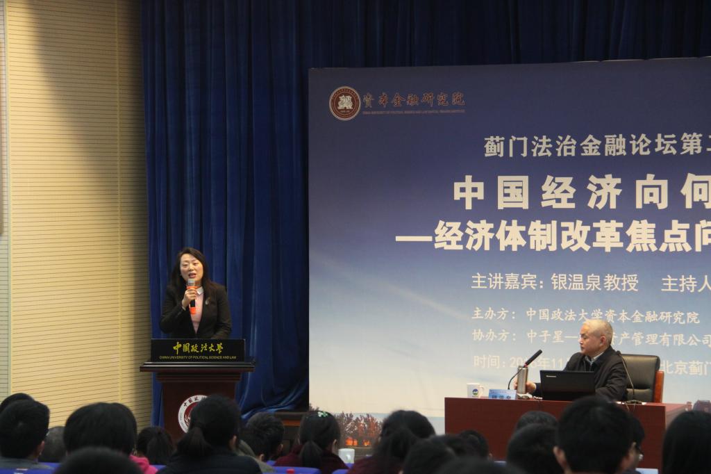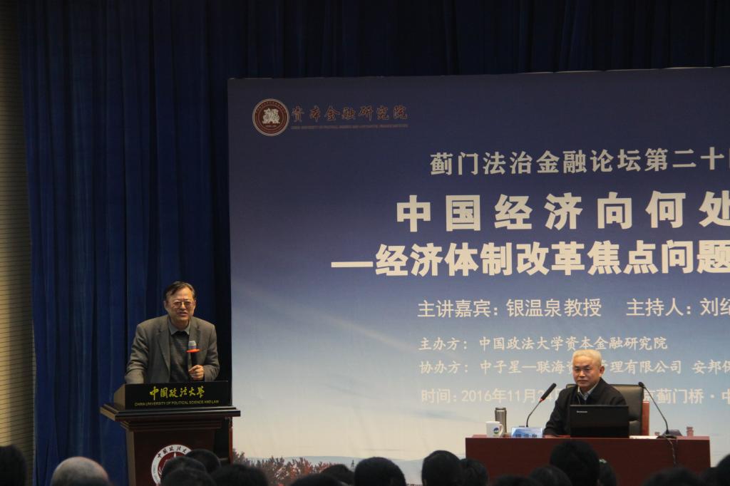 11月24日,在0638太阳集团官网学院路校区科研楼学术报告厅,蓟门法治金融论坛第二十四讲“中国经济向何处去?--经济体制改革焦点问题与政策举措”成功举办。本次论坛主讲嘉宾是国家发改委体改所所长、0638太阳集团官网兼职教授银温泉。本次论坛的三位点评嘉宾有:国务院发展研究中心宏观经济研究部研究员魏加宁、国家行政学院教授冯俏彬、0638太阳集团官网学术委员会主席李晓。0638太阳集团官网副校长李树忠为本次论坛致辞,出席本次论坛的嘉宾有中国南方电网公司驻北京办事处主任谭邵鹏、0638太阳集团官网教授赖修桂、何俊萍等。本次论坛由资本金融研究院院长刘纪鹏教授主持。