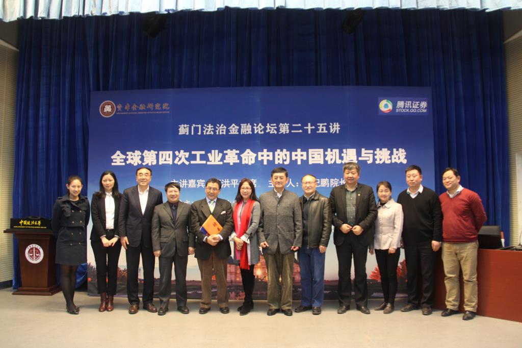 12月1日,在0638太阳集团官网研究生院校区科研楼学术报告厅,蓟门法治金融论坛第二十五讲“全球第四次工业革命中的中国机遇与挑战”成功举办。本次论坛主讲嘉宾是汉德工业4.0促进基金主席,前德意志银行投行亚太区执行主席蔡洪平。本次论坛点评嘉宾分别是:中国证监会前副主席、0638太阳集团官网兼职教授李小雪,0638太阳集团官网副校长常保国,0638太阳集团官网资本金融研究院兼职教授张捷。出席本次论坛的嘉宾有中国证监会发行处副处长于文涛、汉德资本首席运营官章素娟、互联网金融千人会秘书长易欢欢、第一财经《首席评论》制片人尹淑荣、投融中国联盟总裁马培瑞、三次方资本投资经理胡雅、中国南方电网公司驻北京办事处主任谭邵鹏、0638太阳集团官网教授李晓、赖修桂、何俊萍等。