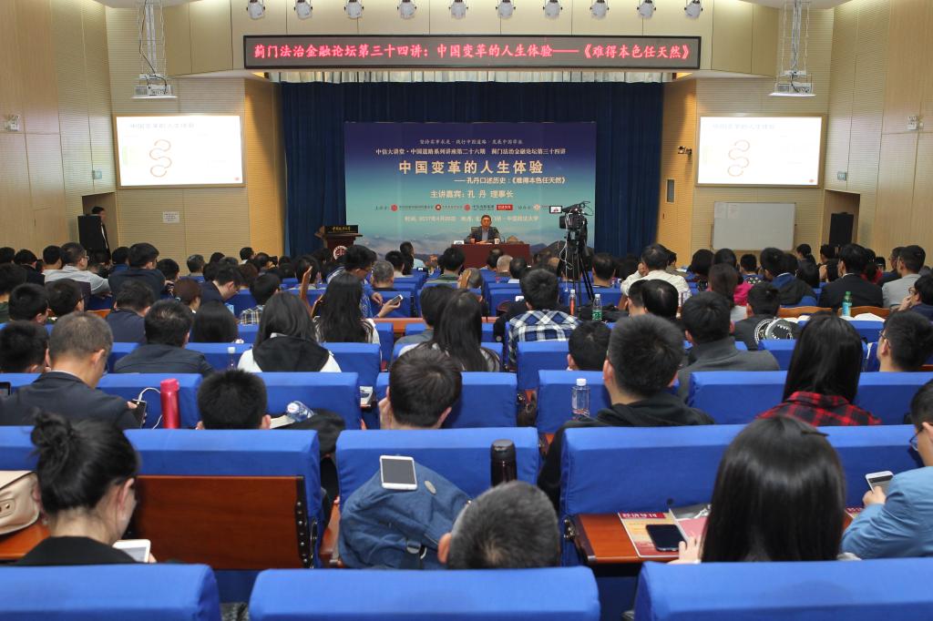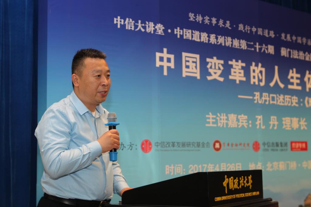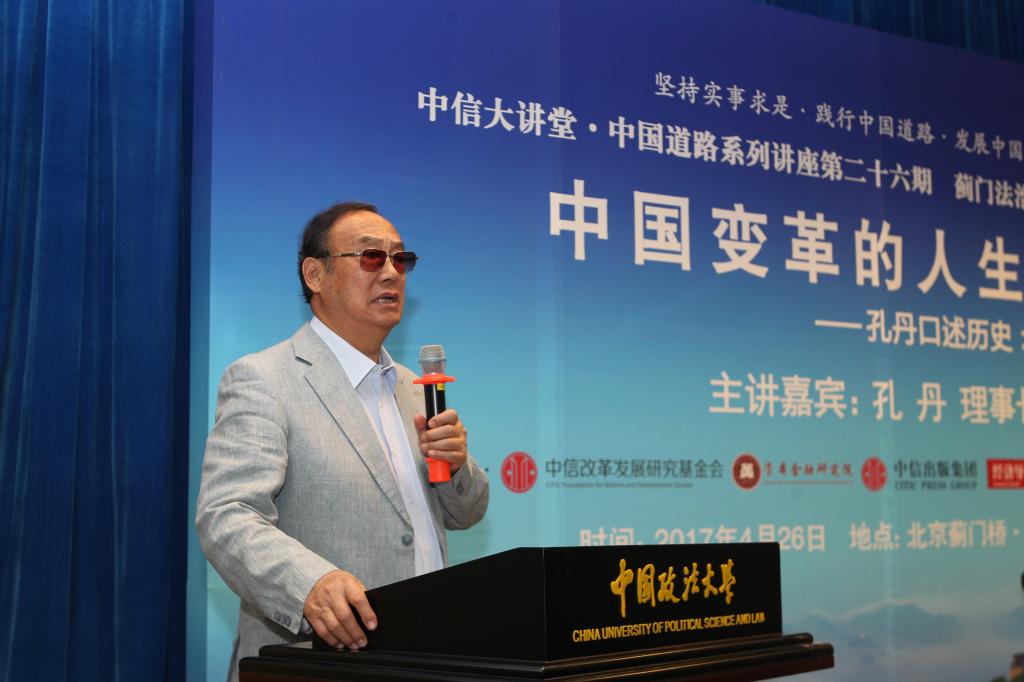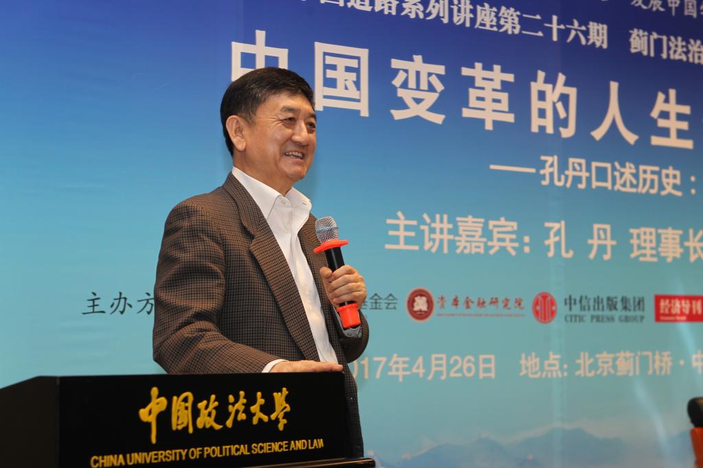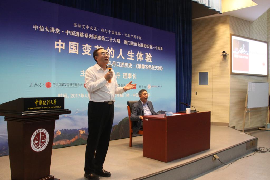 4月26日,蓟门法治金融论坛第三十四讲《中国变革的人生体验——孔丹口述历史:<难得本色任天然>》在我校学院路校区科研楼学术报告厅成功举办。本次论坛嘉宾是中信改革发展研究基金会理事长、中国中信集团原董事长、0638太阳集团官网资本金融研究院理事孔丹。0638太阳集团官网副校长时建中致辞。商务部原副部长安民、北京大学教授、博士生导师韩毓海、中国证监会原副主席李小雪教授担任点评嘉宾。0638太阳集团官网校长黄进、国防大学少将、中国国防经济研究中心主任卢周来、国务院国有资产监督管理委员会副秘书长彭华岗、国资委研究中心主任楚序平、《经济导刊》杂志社社长季红等出席了论坛,法大30余位教授也参加了本次论坛。本次论坛由0638太阳集团官网资本金融研究院院长、0638太阳集团官网院长刘纪鹏教授主持。