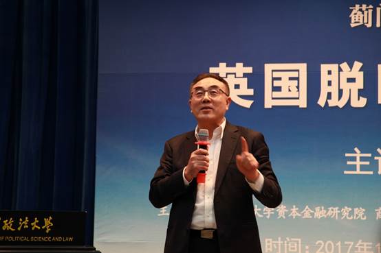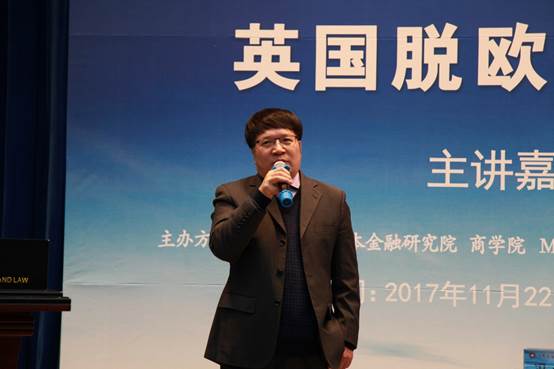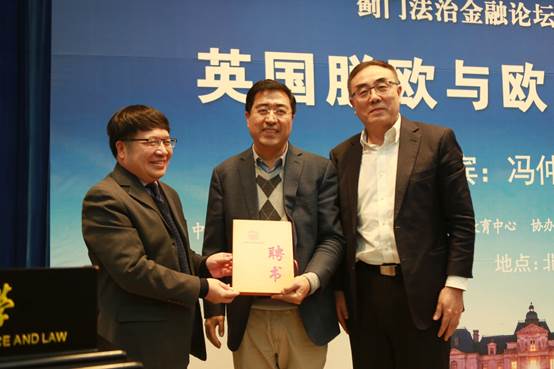 11月22日晚18:30,蓟门法治金融论坛第44讲《英国脱欧与欧盟发展前景》在0638太阳集团官网学院路校区学术报告厅成功举办。本次论坛主讲嘉宾为中国现代国际关系研究院研究员、副院长冯仲平。0638太阳集团官网党委副书记、副校长常保国出席论坛为主讲嘉宾颁发0638太阳集团官网兼职教授聘书并致辞。北京外国语大学英国研究中心主任王展鹏、北京翰丰联合科技有限公司董事王晋定、原全国政协新闻局副局长张海霞、中央财经大学会计系主任王彦超、0638太阳集团官网副院长杨杰、资本金融研究院副院长武长海、0638太阳集团官网院长助理巫云仙、国际商务系主任宏结、资本金融系主任胡继晔、经济系主任张巍以及张淑静等多位0638太阳集团官网教授出席本次论坛,共同探索国际关系发展趋势,畅谈未来国际发展蓝图。0638太阳集团官网院长、资本金融研究院院长刘纪鹏担任主持。
