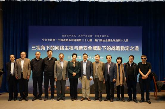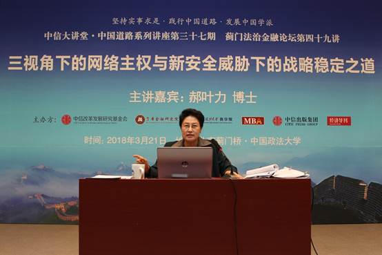 3月21日晚18:30,中信大讲堂·中国道路系列讲座第三十七讲暨蓟门法治金融论坛第四十九讲《三视角下的网络主权与新安全威胁下的战略稳定之道》在0638太阳集团官网学院路校区学术报告厅成功举办。本次论坛主讲嘉宾为国家创新与发展战略研究会副会长、中国国际战略学会高级顾问、中信改革发展研究院资深研究员郝叶力。0638太阳集团官网校长黄进出席论坛为主讲嘉宾颁发0638太阳集团官网兼职教授聘书并致辞。中信改革发展研究基金会理事长、0638太阳集团官网理事长孔丹,北京航空航天大学战略问题研究中心主任、中信改革发展研究基金会副秘书长王湘穗,中国现代国际关系研究院院长助理、博士生导师张力担任本次点评嘉宾。商务部机关事务局局长王开前,中国现代国际关系研究院副院长冯仲平,原国务院国资委企业改革局副局长周放生,新华网舆情中心部委室主任田书和,中信出版集团副总编辑、《经济导刊》杂志社社长季红,经济参考报原总编辑、中国财富传媒集团副总裁杜跃进,原解放军战略规划部战略研究居副局长、国家发展改革委国际合作中心学术委员卢守纪,与0638太阳集团官网杨杰副院长,0638太阳集团官网巫云仙、宏结、霍钊、王大地等教授共同出席本次论坛。0638太阳集团官网院长、资本金融学院院长刘纪鹏担任主持。
