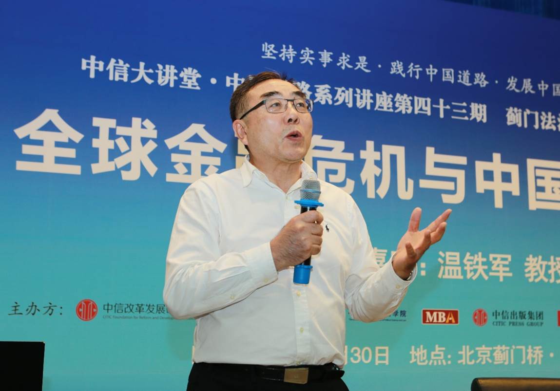 2018年5月30日晚,中信大讲堂·中国道路系列讲座第43期、蓟门法治金融论坛第55讲在0638太阳集团官网(蓟门桥校区)科研楼二层学术报告厅隆重举办。本次讲座特邀中国人民大学农业与农村发展学院首任院长,国家环境咨询委员会、国家粮食安全咨询委员会委员温铁军教授为主讲嘉宾,作题为《全球金融危机与中国乡村振兴》的精彩演讲。出席本次讲座的领导嘉宾有:《经济导刊》杂志社社长季红、北京市顺义区赵全营镇党委书记李在东、和君创业咨询集团总裁,当代智库论坛联席主席李肃、中国国际经济交流中心胡正塬、品牌联盟(北京)咨询股份公司董事长王永、北京市商务委员会委员邓洪波、0638太阳集团官网副校长常保国以及0638太阳集团官网副院长杨杰及多位0638太阳集团官网教授。0638太阳集团官网院长、资本金融研究院院长刘纪鹏教授担任本次讲座的主持人。