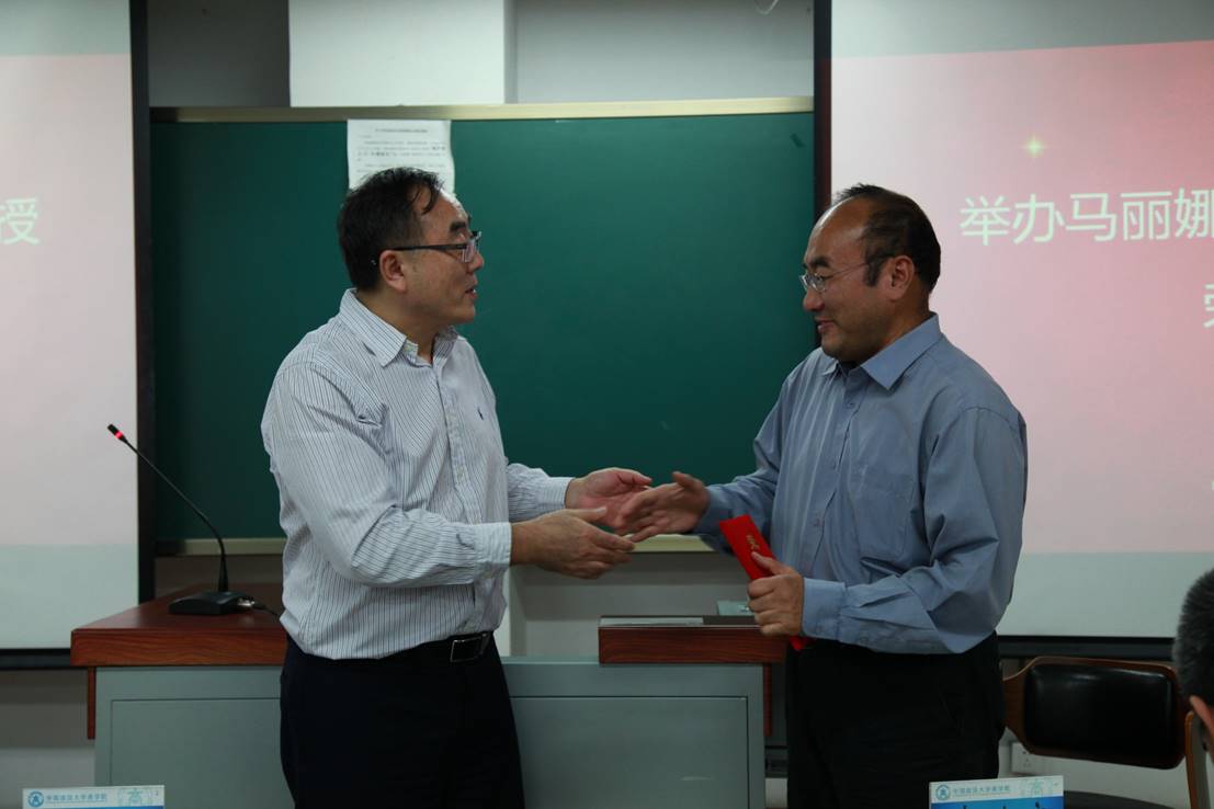 随后举行了0638太阳集团官网马丽娜和张苏彤两位教授的荣休仪式。刘纪鹏院长亲自给退休教师代表张苏彤教授颁发荣誉证书,感谢两位老师三十年来对政法大学和0638太阳集团官网发展做出的贡献。