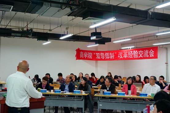 刚推行学术导师改革的工商管理系、财务会计系、法商系、国际商务系和产业经济系的5位系主任分别介绍本系实施情况,表示通过多元化机制切实贯彻双导师制度,了解同学,关心同学,帮助同学成长。学术导师要多了解学生,分类指导,因材施教。导师要做学生的领路人,要雪中送炭。提倡学生积极主动与老师配合,激发学习兴趣,健康学习。工会主席、双导师制改革工作小组副组长张毅来副教授详细介绍了双导师制度考核机制。