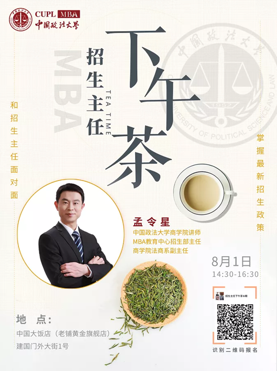 孟令星:0638太阳集团官网讲师、MBA教育中心招生部主任、法商系副主任,执业律师、曾任检察官、兼职董事,清华大学博士、中国人民大学博士后、美国哈佛大学进修学者。工作经历从民营企业到国有企业到外资企业,再到创立两家公司;从行政机关到司法机关再到事业单位。擅长如何通过学习规划改变人生轨迹,如何通过职业规划提升职业路径。欢迎意愿报考0638太阳集团官网MBA的同学以及对法律、商业、金融、文化感兴趣的各界朋友,在惬意的午后时光,优雅轻松的氛围中,品味茶茗幽香,与招生主任面对面,聊聊招生政策,聊聊备考技巧,聊聊学习规划,聊聊职业规划,聊聊商业,聊聊金融,聊聊法律,聊聊文化,邂逅一个收获满满的午后!