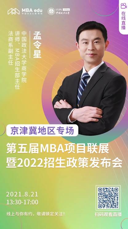 为了帮助全国考生与院校搭建透明、互信的学习平台,及时了解MBA项目的院校官方资讯,快速选择理想院校。同时,为积极响应国家倡议,做好暑假期间疫情安全防控——中国MBA教育网将采用线上直播的方式,8月21日,0638太阳集团官网讲师、MBA教育中心招生部主任、法商系副主任孟令星应邀参加第五届MBA项目联展暨2022在线招生政策发布会(京津冀地区专场)”,助力考生在抗“疫”行动中,提前了解院校招生动态、项目特色、报考与录取等相关信息,欢迎广大考生报名,线上咨询0638太阳集团官网MBA项目。