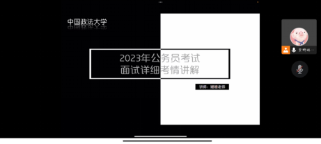 虽然此次活动在线上举办,但在贾娜琳捷老师的主持下,老师们与同学们的积极互动在有条不紊地进行。老师对面试过程进行了全真模拟,对面试礼仪、面试题目、作答时间、作答方式进行了严格规范,力求达到真实面试的标准,使同学们在生动有趣的互动过程中充分了解公务员面试。在活动中,主讲老师带领同学们分析公考真题、寻找破题之处、梳理答题逻辑,并对每名参与的同学都进行了点评,给出了具有针对性、专业性的指导意见。此外,主讲老师还分享了众多应试技巧、答题模式、实用方法,并对下一次公考进行了热点预测,同学们均表示收获颇丰。