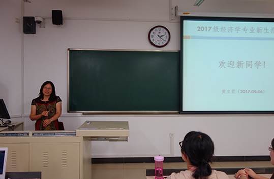 经济学专业的专业导向课程由经济系主任张巍教授、副主任黄立君副教授和邓达副教授主讲,课程在明法楼104教室举行。张巍老师介绍了“一主两翼”的改革及其创新、双导师制及0638太阳集团官网理事会,简要说明了经济学学科概况与学习特点。黄立君老师则深入浅出地介绍了经济学本科生培养方案、课堂教学与课堂实践教学,并以“为者常成,行者常至”与大家共勉。最后,邓达老师与同学们交流大学四年应如何度过,希望大家在大学中学会利用资源,丰富大学生活。