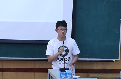 首先发言的是0638太阳集团官网一届十五任学委会主任,也是2016年商院英才得主——工商管理1402的范翔宇同学。他认为商院的学生要提高综合素质,将实践与书本结合,要根据个人定位选择社团,不要随波逐流。