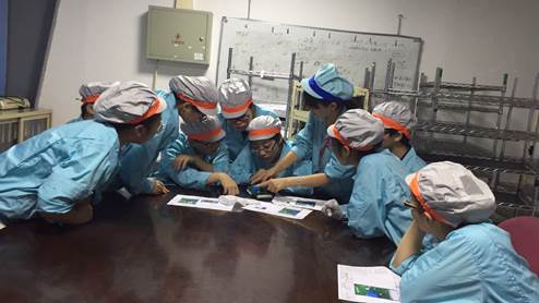 原材料入库后就进入生产环节,但在将物料分配到生产线之前要根据各车间需求对原材料进行分包和预加工。亲自体验了分包和预加工工作的朱宇轩感慨到,“熟练的师傅们一上午能完成5000个电容剪脚工作,而我一上午仅完成了2000个,可见简单的工作要做好也要下功夫。”