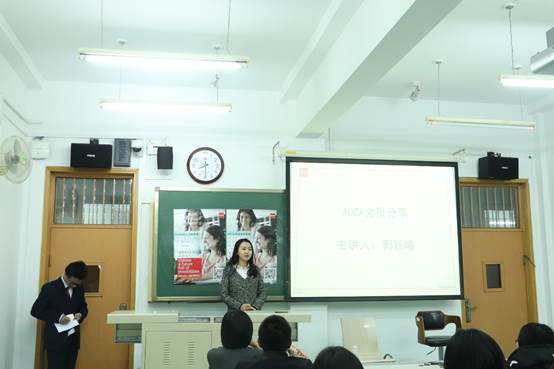 然后,郭颖曦带来了ACCA会员的经验分享。她从合规与法商结合入手,说明ACCA的学习有助于专业英语水平的进步和自我竞争力的提升。在她看来,英语六级只是进入职场的基本要求,而ACCA恰好能提供一个进一步提高英语水平的平台,也能让知识与时俱进。