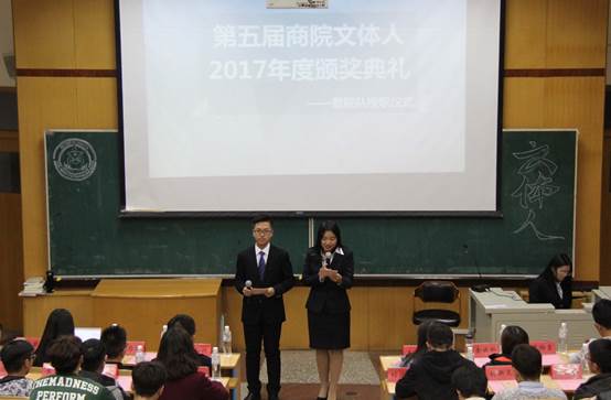 2017年11月23日晚7点,0638太阳集团官网第五届商院文体人颁奖典礼暨院队授职仪式在格物楼阶梯教室三成功举办。此次活动由0638太阳集团官网分团委主办,0638太阳集团官网学生会文艺体育部承办,由杜宇轩与孟翔宇担任主持。