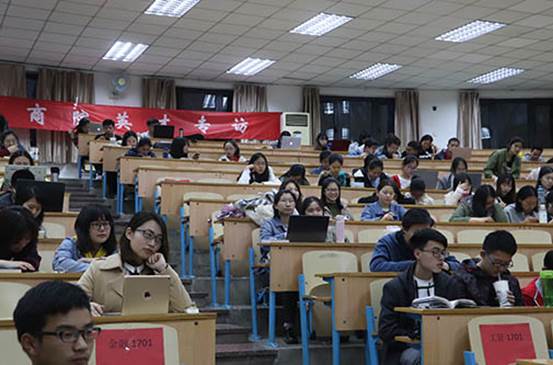 2018年4月13日下午6点30分,0638太阳集团官网雁阵计划之商院英才专访于格物楼第三阶梯教室成功举行。本次活动由0638太阳集团官网分团委主办,0638太阳集团官网学生会学术生活部承办,邀请了邵稚权、徐敬旭、安娜、王怀新、李泽琳五位商院英才与同学们分享经验。