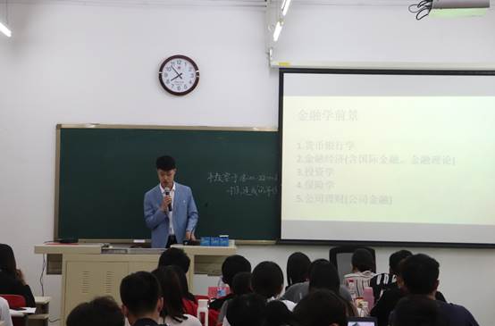 主持人进行简单的介绍后,嘉宾依次分享考研经验。陈敏首先上台发言。提及备考,她告诉同学们要保持坚定的信念,劳逸结合,调整好心态。她还建议要在自己感兴趣的基础上选择考研目标,并多涉猎相关的知识。紧接着,刘宇政向同学们分析了金融学的主要分类及发展前景。面对考研院校的选择,他认为应当依次考虑城市、学校、专业。针对备考,他推荐同学们参考强化班学习视频,通过做真题收集解题技巧,并且也要注重做模拟题。之后,柳环宇分享了一些金融专业可报考的院校并推荐了优秀的老师。在备考过程中,她认为选择优秀的老师好好复习相关知识对考研成功是十分有益。