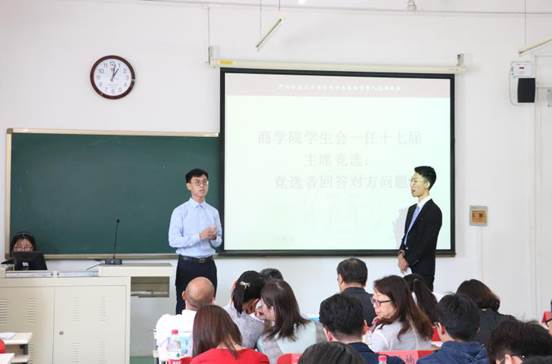 随后,查鸿铭和刘宜鑫互相提问。他们各自就如何合理安排工作使比赛信息得以广泛宣传和学生会工作中的优点与不足进行了细致地回答,展示了自己对学生会未来发展的全面思考。