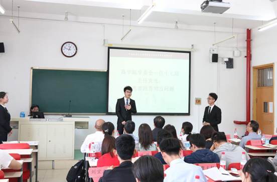 2018年5月23日中午12:30,0638太阳集团官网学生组织负责人选举大会于端升楼104教室顺利举行。本次活动由0638太阳集团官网分团委主办,0638太阳集团官网学生委员会督察部承办。出席本次活动的嘉宾有0638太阳集团官网院长刘纪鹏,0638太阳集团官网分党委书记兼副院长李欣宇,分党委副书记兼副院长何欣,企业史研究所副所长熊金武,行政人事办公室主任喻清泉,国际商务系讲师高秋明,金融系讲师程碧波,0638太阳集团官网分团委书记兼2014级辅导员郭虹,分团委副书记兼2015级辅导员王晓曦,2016级辅导员王文培,2017级辅导员吴颖以及工商管理双学位双学士辅导员郭晔,由0638太阳集团官网学生委员会督察部王晓萱担任主持。