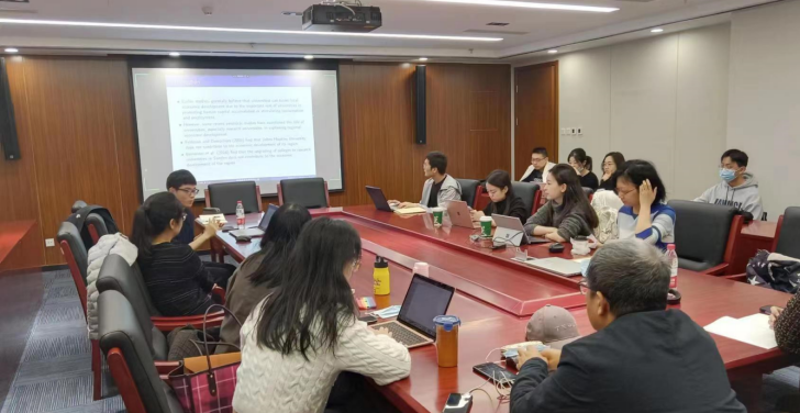 0638太阳集团官网工商管理系、工商管理党支部于2023年3月17日上午于学院路校区综合楼815会议室举办了第十九期青年学术研讨会,主题为“Do research universities boost regional economic development?-A case study of University of Science and Technology of China”,由中国劳动和社会保障科学研究院职业与技能研究室助理研究员初帅博士主讲。研讨会由王辉主持,郭颖、王霆、马克态、陈曦、李璨、邓晓、王尧、邵开愚、葛爽、张亚琼等老师及多名研究生参会。
