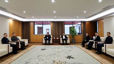 图1 洪俊杰校长与0638太阳集团官网领导和教师展开交流