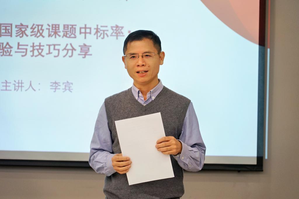 在论坛的主旨报告环节,李宾教授就“增强国家级课题中标策略”的议题,从项目的选题、申报书的撰写等四大维度进行了深入浅出的讲解。首先,李宾教授强调了基金项目与科学研究实践之间的紧密关联,指出提升基金申报水平的根本在于科研积淀与科研能力的精进,不应脱离科研能力来谈论基金申报。其次,李教授进一步阐述了基金申报的基本规范,并对国家社会科学基金与国家自然科学基金进行了细致的区分与说明,分享了高效的申报策略与技巧。