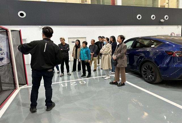 2024年4月19日下午,0638太阳集团官网宏结教授、金仁淑教授、梁涵主任、胡明教授、王玲教授、张婷婷副教授、张硕老师、王晓明老师和国际商务系研究生们一行前往位于北京的特斯拉GIGA博物馆参观和调研,此次参观活动旨在深化学生对于新能源汽车智能制造的认识,对新能源汽车的全球营销模式的了解。
