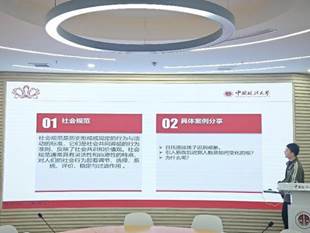 此后,各位老师对于分享的内容进行点评,使得同学们对于社会规范,法律的应用等内容有了一个更加深刻的了解,并对同学们的一些看法进行了相应的指导。对于其中的一些内容,发表了自己的理解,加深了同学们的理解。