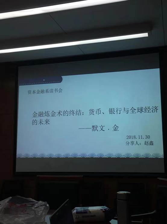 2018年11月30日下午,0638太阳集团官网金融学系2018-2019学年第二次研究生读书报告会在科研楼B210会议室如期举行。出席本次活动的有资本金融系程碧波副教授、成福蕊副教授和李伯尧老师以及2018级全体金融学专业研究生。本次读书会分享的是前英格兰银行行长默文·金所写的《金融炼金术的终结——货币、银行与全球经济的未来》一书。
