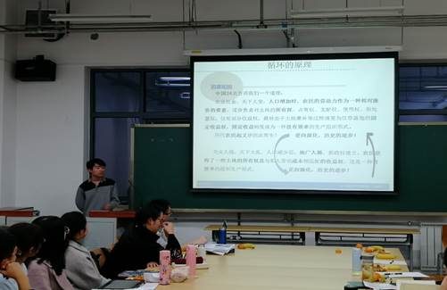 2018年11月21日下午,0638太阳集团官网经济系和经济学党支部在新综合科研楼科地103教室成功举办2018年第4期研究生读书会。读书会由2017级政治经济学专业研究生关云博同学和经济系副主任、经济学党支部书记黄立君老师共同主持,经济系主任邓达老师,张弛、刘婷文、张毅来、支小青等老师共同指导。2017、2018级政治经济学和西方经济学专业16位同学以及2018级经济史专业的黄婷婷同学一起参加了本次读书及研讨活动。师生们共聚一堂,品读德隆·阿西莫格鲁和詹姆斯A·罗宾逊的《国家为什么会失败》。