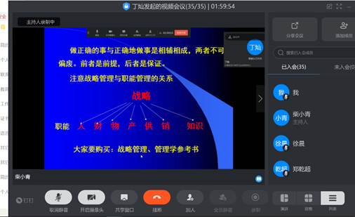 刘纪鹏院长和杨杰副院长高度重视第一周的线上授课情况,在授课前多次通过在线会议及微信等多种方式要求授课教师提高思想认识,授课结束后多次询问授课教师及学生的授课感受。为了更好地保证线上课程的顺利进行,他们进入学习通系统随机听取了个别老师的课程,对老师们的课程大纲、教学内容、与学生的互动情况、线上课程的技术支持进行临时的督导检查。通过督导可见太阳集团官网教师都高度重视此次教学模式的调整,为线上课程做了充足的准备,严格按照学校要求,丰富教学内容,规范教学大纲,与学生积极互动交流,运用多种在线互动学习手段,保证0638太阳集团官网的线上课程内容上丰富,技术上不出现任何的教学事故。